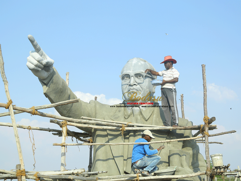 The statue is of standing posture wearing a coat, spectacles, holding our constitution book in the left hand and pointing the finger with right hand. I made so much research for the original pictures and videos of Ambedkar to bring the exact and finest resemblance in the statue. My only dream is to serve India with my finest artistic creations.